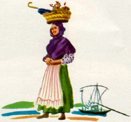 Down in the Spanish plains are mile after mile of thriving orchards, olive and orange groves. And lovely cities, such as Seville, with the famous Torre Bermeja, magnificent cathedral and the Alcazar, residence of Moorish Sultans long ago. The Moors left many beautiful examples of their highly developed architectural skill in this section of Spain. On the edge of the Mediterranean lies Barcelona, chief port of Spain. A beau, tiful city and winter resort, Barcelona, on the route of the Clippers, is also the site of the Monastery of Montserrat, in the mountains outside the city. This is the location of the shrine of the Black Virgin, visited by many pilgrims during Holy Year. In Valencia, every season seems to be spring. Orange, lemon, olive, fig and palm grow here in profusion, blending their different shades of foliage in a beautiful pattern. Farther south along the coast is Malaga, sometimes called the Spanish Riviera. And offshore, Majorca, which some people believe to be the most beautiful island resort in the world.